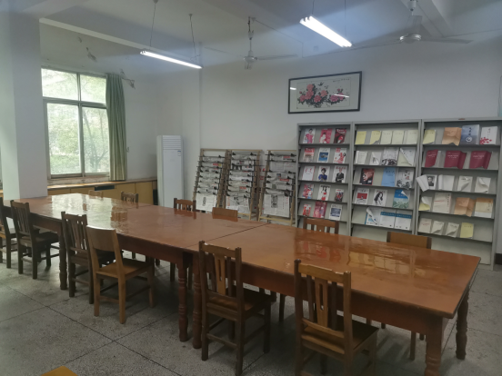 摆放整齐整洁明亮的阅览室。