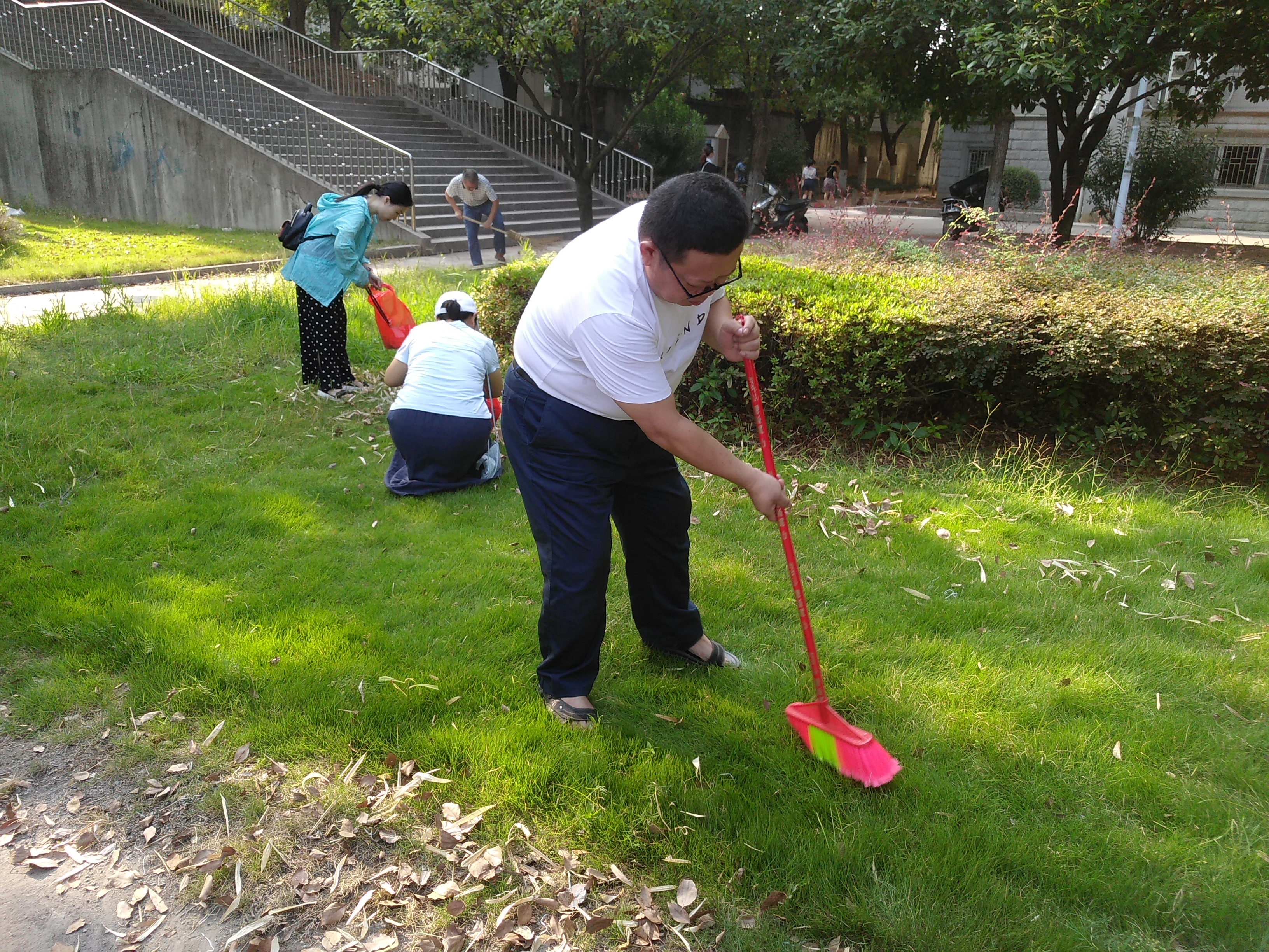 开学伊始,为保持校园干净、整洁、舒适,离退休服务中心组织全体工作人员积极参加校内爱国卫生运动,清除室外绿地的白色垃圾、杂草、枯枝、败叶等,为建设文明、健康、美丽的校园做出自己的贡献。