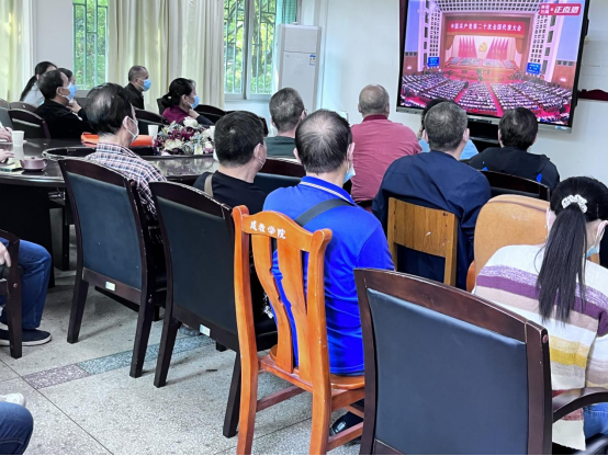 10月16日上午,离退休服务中心在职党员和各支部书记在北校区办公楼二楼党员活动室一起集中收看中国共产党第二十次全国代表大会开幕会。其他离退休党员通过收看实时直播、线上视频等形式,自行观看。