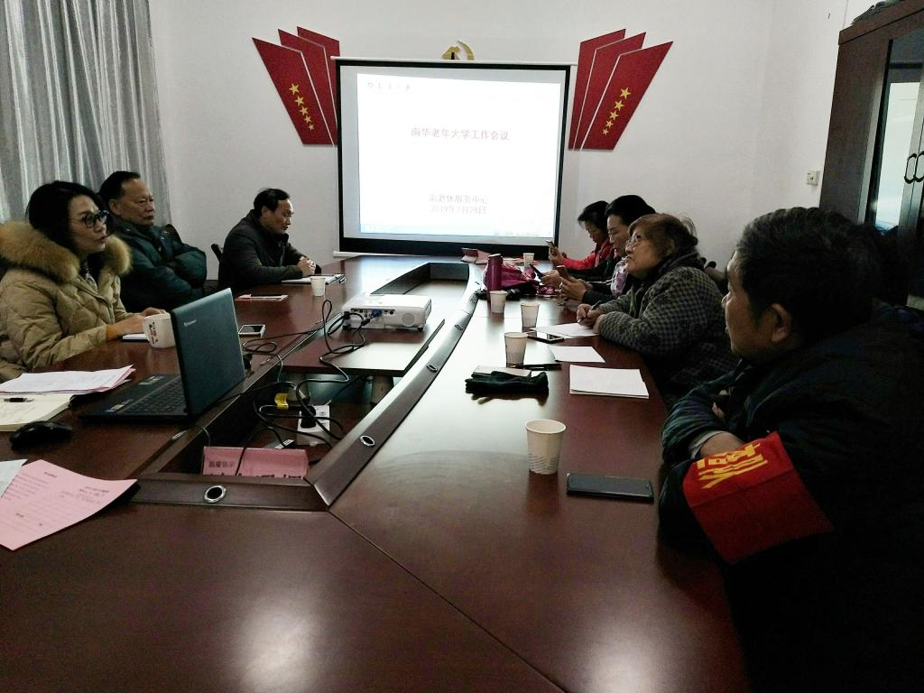 2月28日上午,南华老年大学召开2019年春季学期第一次工作会议,就老年大学人员调整及2019年春季学期教学安排等进行工作布置,充分做好开学各项准备工作,全力迎接新学期。离退休服务中心领导廖卫红、李望平、陈健平,老年大学校长黄芬远、办公室主任李佳以及各班班长参加会议。会议在离退休服务中心党员会议室举行。