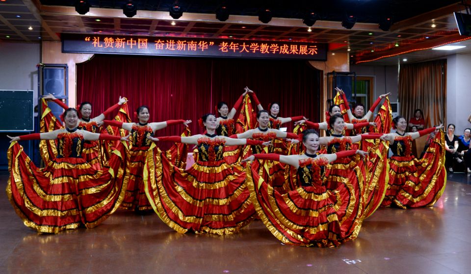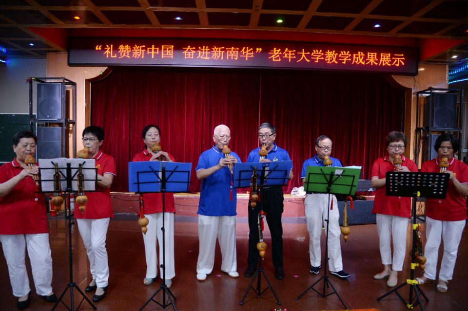 本次教学成果展上,学员们奉献了《红歌联奏》、《八段锦》、《人间第一情》、《斗牛舞》、《我和我的祖国》等共8个精彩纷呈的文艺节目,包括舞蹈、大合唱、健身气功、柔力球、模特、葫芦丝、小提琴等,参加演出的老同志们态度极为认真、从妆容、服装到表演都倾尽所学展示教学成果。整场演出高潮迭起,营造出热烈喜庆、欢乐祥和的氛围,充分展示了我校离退休人员人蓬勃向上的精神风貌和精益求精的艺术风采。