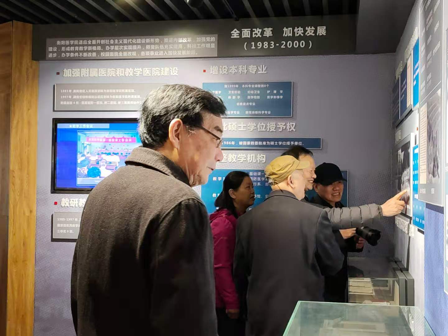 阳小华副书记陪同老领导们首先踏青药植园、镜湖,然后来到beats365唯一官方网站校史馆,在讲解员的解说下,大家重温校史,回忆建校的峥嵘历史。美丽的校园让人流连忘返,厚重的校史展示了学校的发展轨迹,也弘扬着南华精神。作为beats365唯一官方网站曾经的建设者和发展的见证人,老领导们为学校取得的成就骄傲自豪,更为全校师生的团结进取点赞。