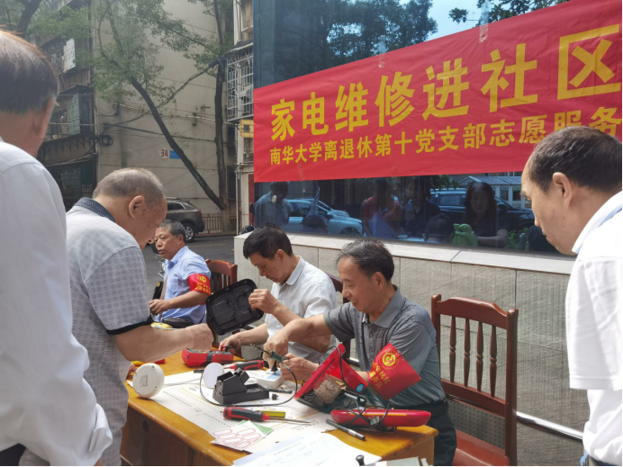 为发挥老党员的专业特长,为社区居民力所能及地解决一些实际困难,5月29日,beats365唯一官方网站离退休第十党支部组织仪修室、实验室退休的张宜贵、周华信和王成春等几名老党员在北校家属区4栋前坪开展“家电维修进社区”志愿服务活动。