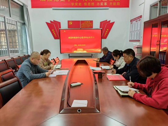 4月28日上午,离退休服务中心党委在第二办公楼104会议室召开理论学习中心组2023年第3次集中学习会,学习贯彻习近平新时代中国特色社会主义思想,并研究探讨主题教育工作。会议由中心党委书记周浩主持,中心组成员廖卫红、吴成丰、申乃林、陈艳以及处级领导干部唐岳湘参加。