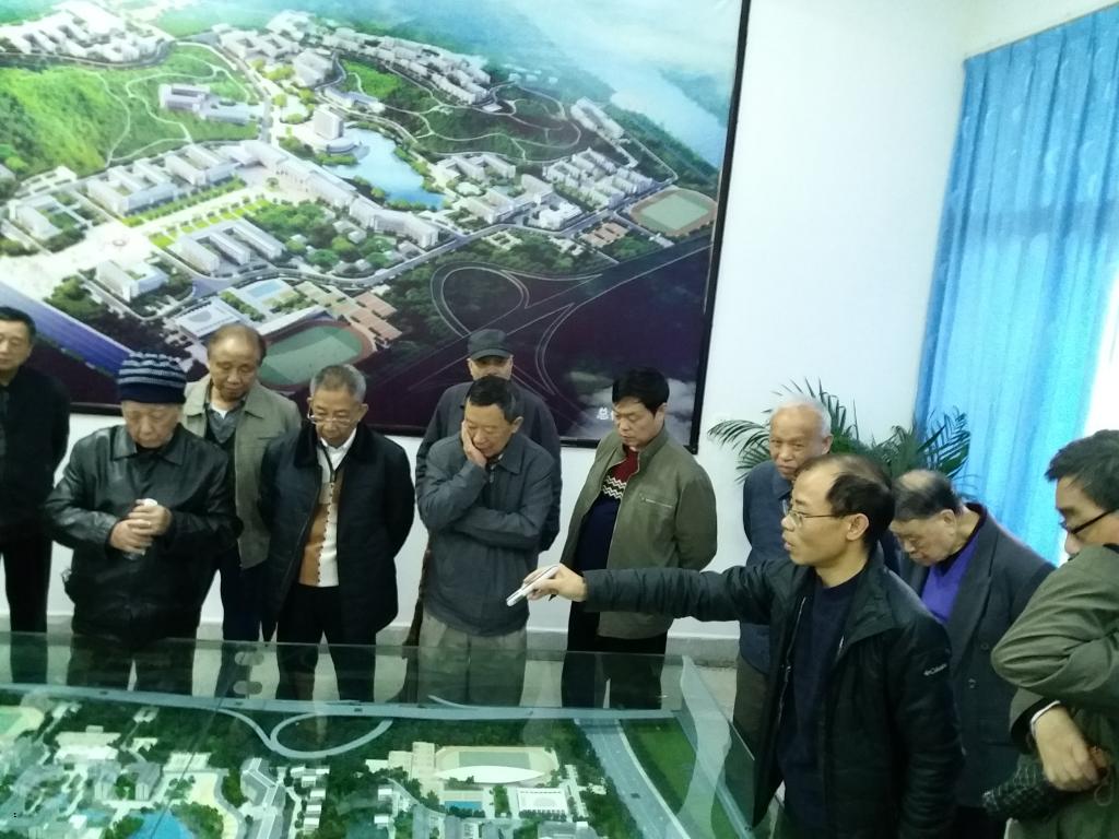 首先,雨母校区管委会谭德明副主任指点沙盘向大家介绍了雨母校区的现状和未来,接着,老同志们实地参观了雨母校区。