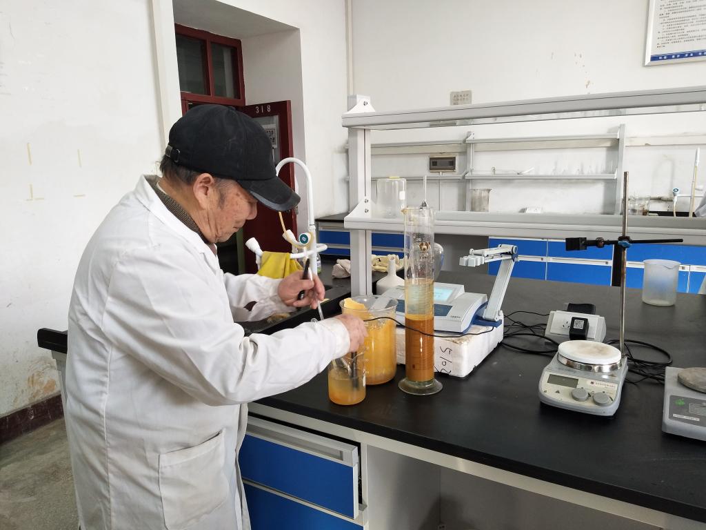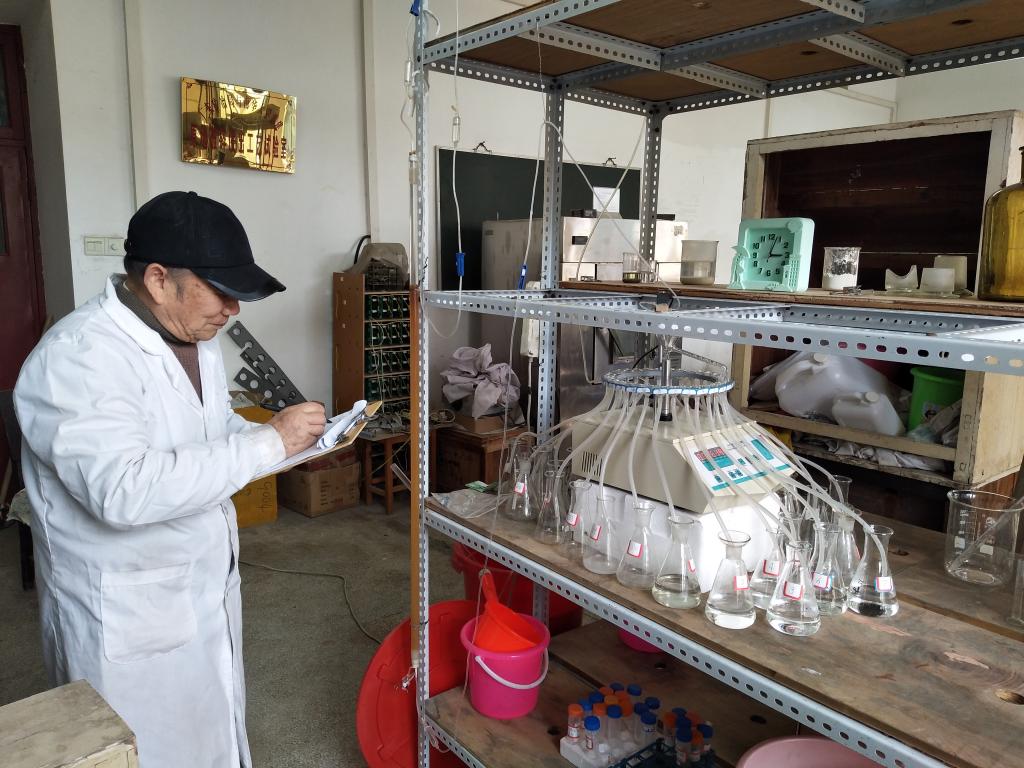 原来,这位老人是退休教师、老党员余阳印。就在一个月前,他接到资源环境与安全工程学院院长李广悦的电话,李院长所在的科研团队正在开展中广核集团的一个技术服务项目,需要一位技术人员参与其中部分的实验工作,希望余老师能参加。尽管已经82岁高龄,但当听到有工作需要时,余老师二话不说,张口就答应了。就这样,从10月开始,余老师每天按时到柱浸实验室,带着研究生一起做实验。